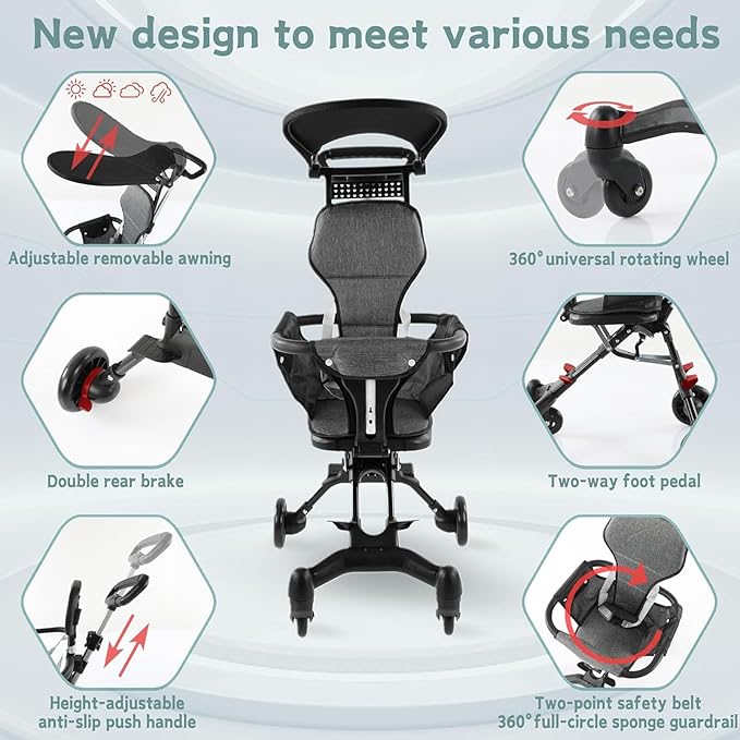 🔹 سهلة للأهل المقابض مريحة للزق والتحكم بسهولة في الاتجاه.