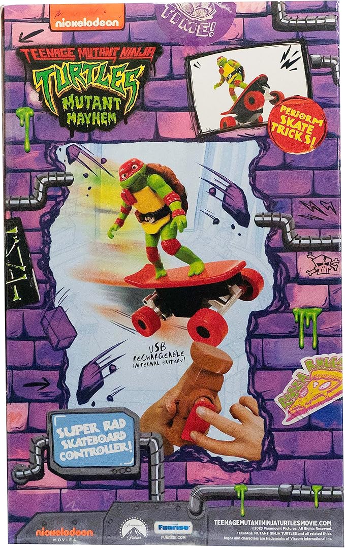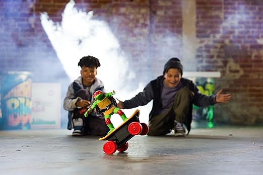 🛹 شخصية سلاحف النينجا على سكيت بورد متحرك + ريموت كنترول ذكي 👉 تحكم كامل في الحركة: يجري، يلف، يقفز، ويعمل حركات استعراضية تخلي اللعب مليان إثارة وضحك.
